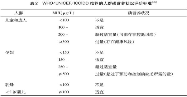 人體內(nèi)碘含量標(biāo)準(zhǔn)對(duì)照表: